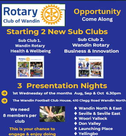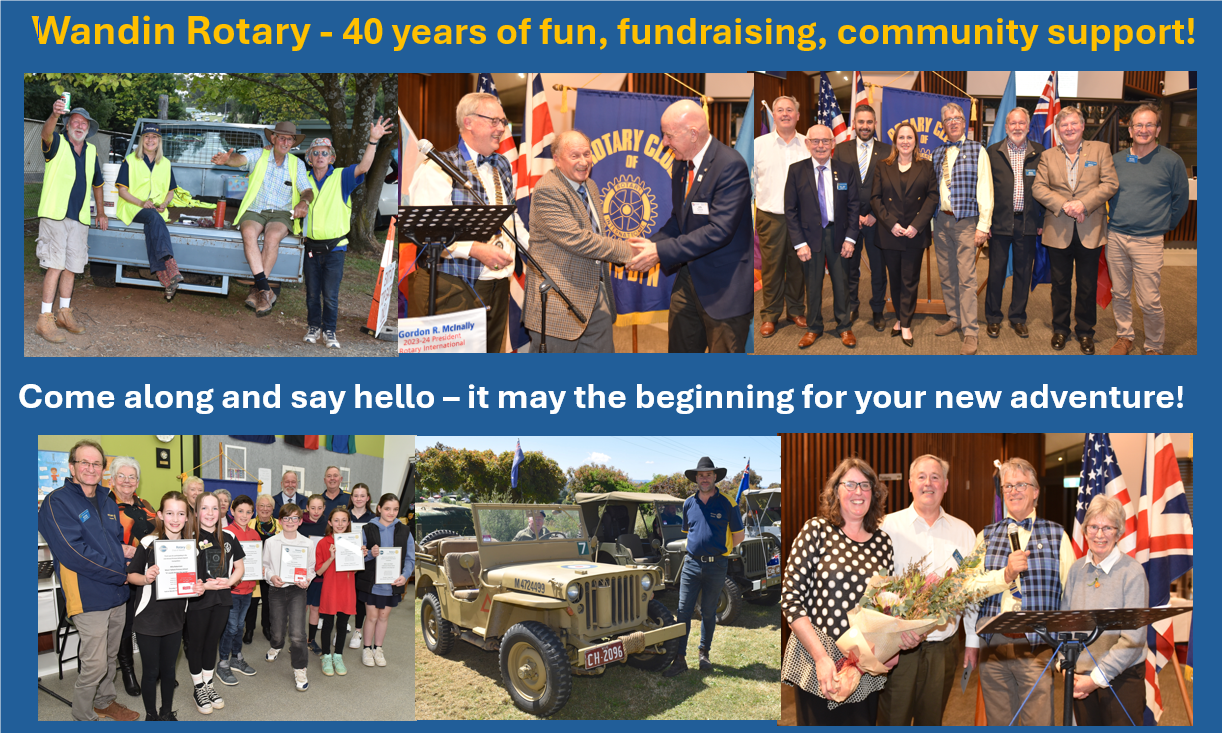 Thank you for visiting the Rotary Club of Wandin homepage, and we hope you consider becoming a part of our journey as we work together to create a world filled with compassion, goodwill, and positive change.